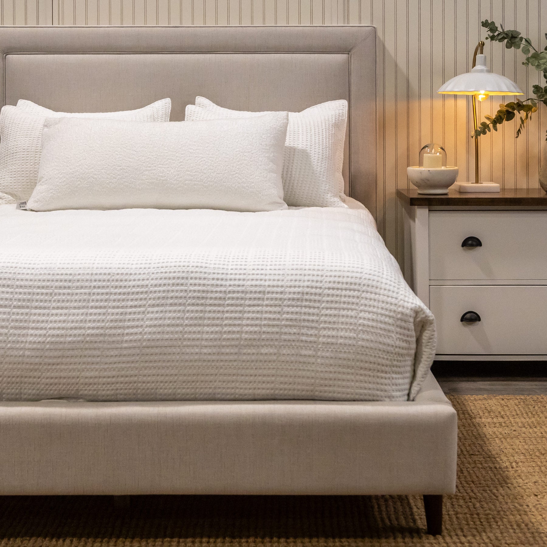 Thoughtfully designed to create the perfect addition to your home or lake house retreat. Bench-made in Ontario and available in over 100 fabric options. This style can be customized to suit your mattress choice, with or without boxspring.