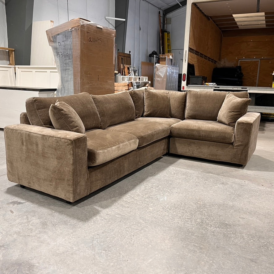 Our popular Northshore is a showstopper! Unique to this style, 8” wider track arm, exposed leg and a Velcro system that keeps the slipcover neatly against the sofa base. Loose rectangle box back and seat cushion.