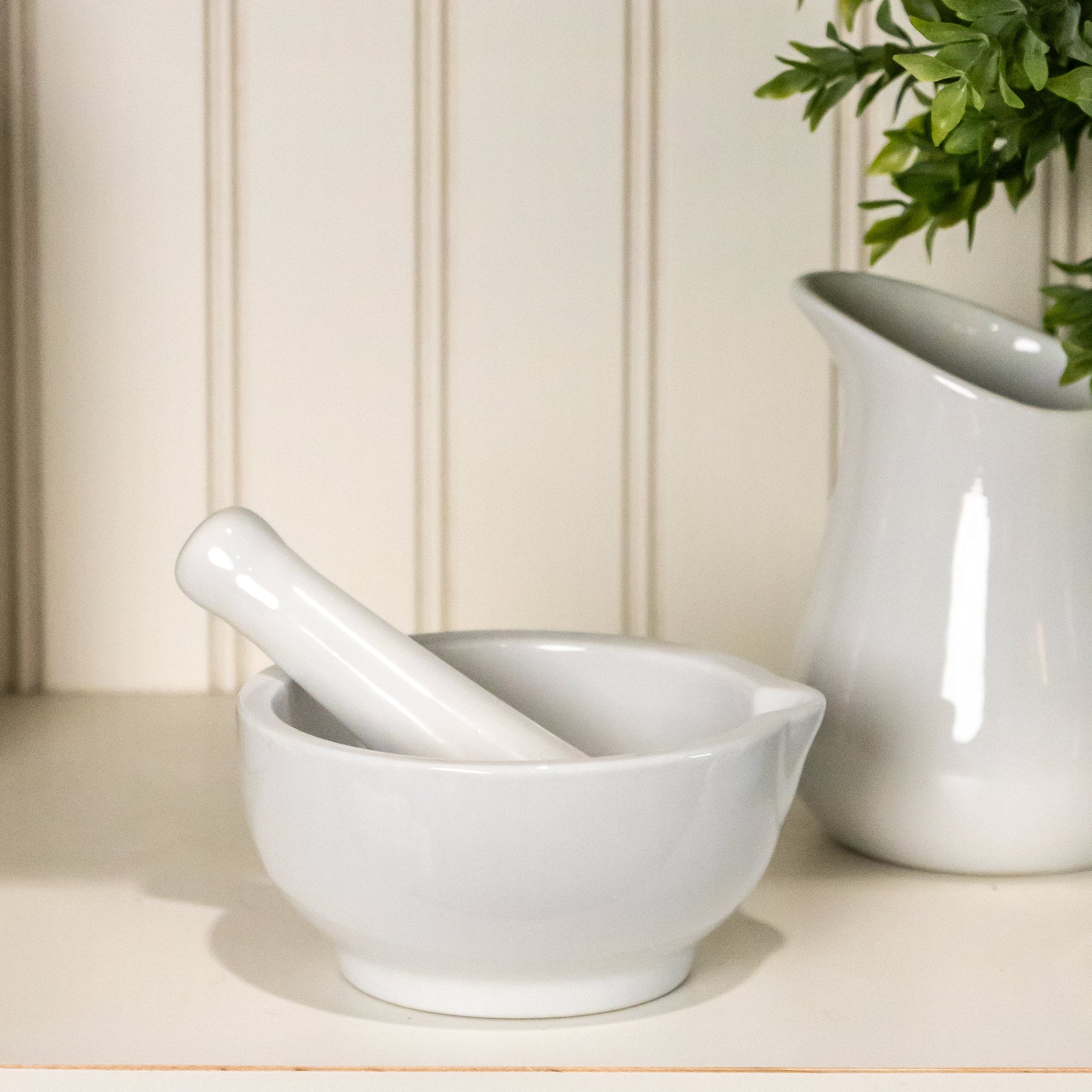 Elevate your kitchen with this timeless white mortar and pestle—perfect for grinding herbs, spices, and small ingredients with ease. Its smooth, durable finish offers excellent control while adding a clean, modern touch to your countertop décor.