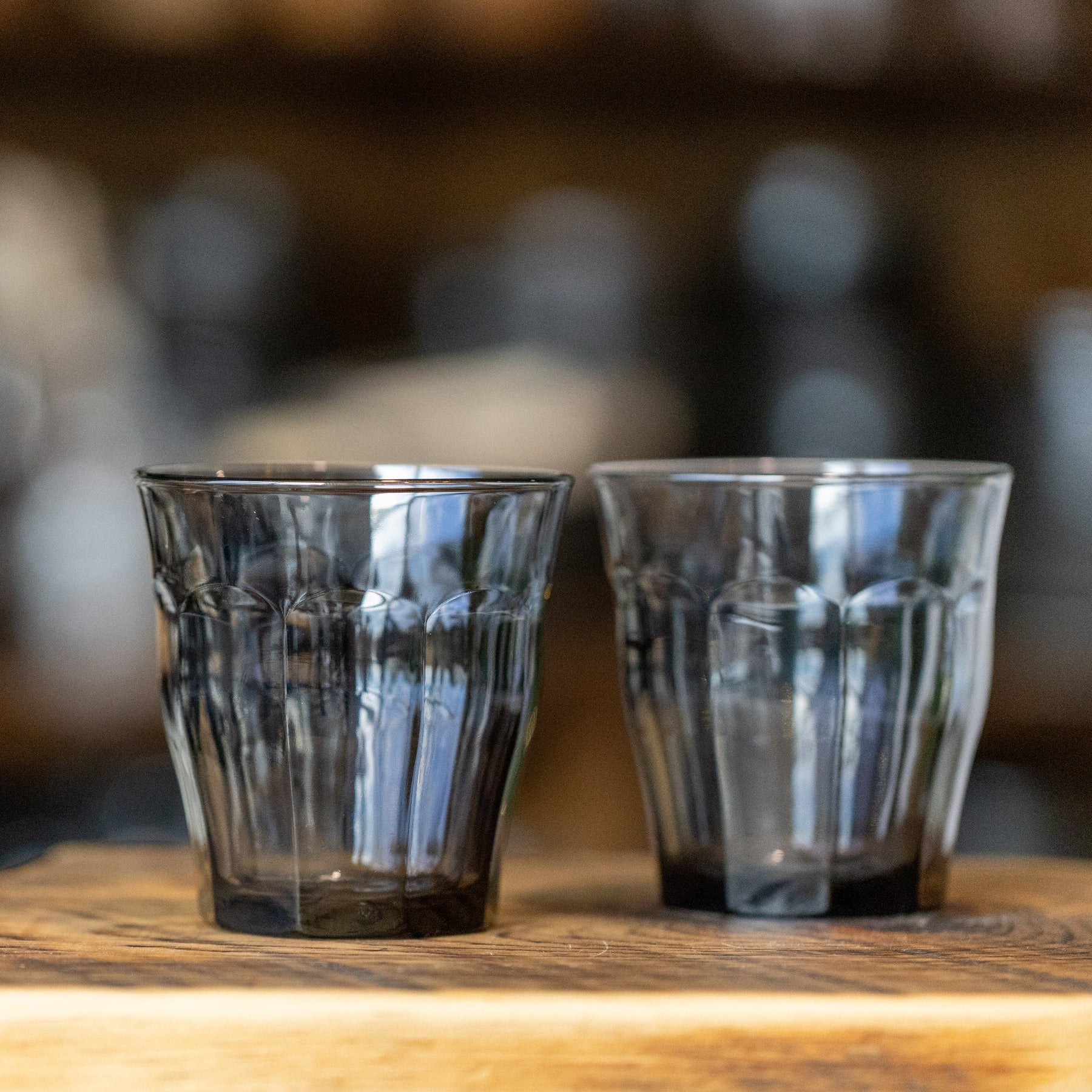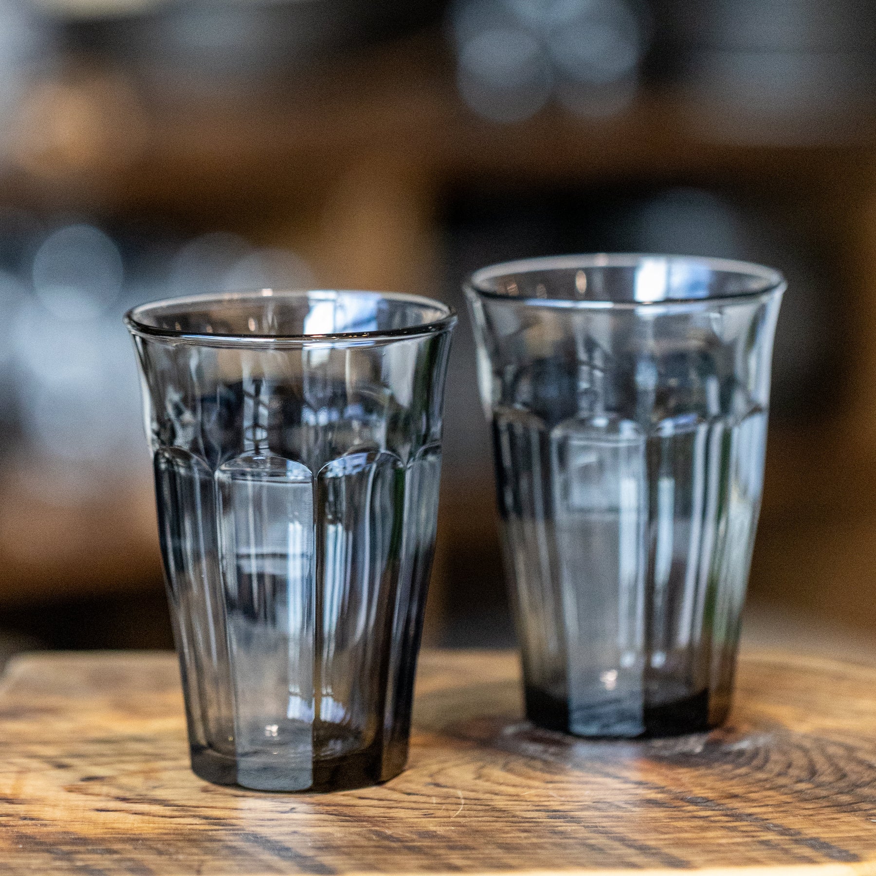 Bring European charm to your table. Their scalloped detailing and softly flared shape offer a comfortable grip, while the moody charcoal tint adds a modern, sophisticated twist. Perfect for water, juice, cocktails, or espresso drinks, they’re as durable as they are stylish.