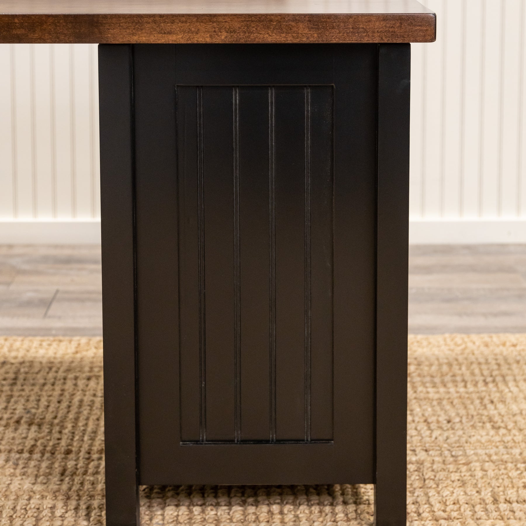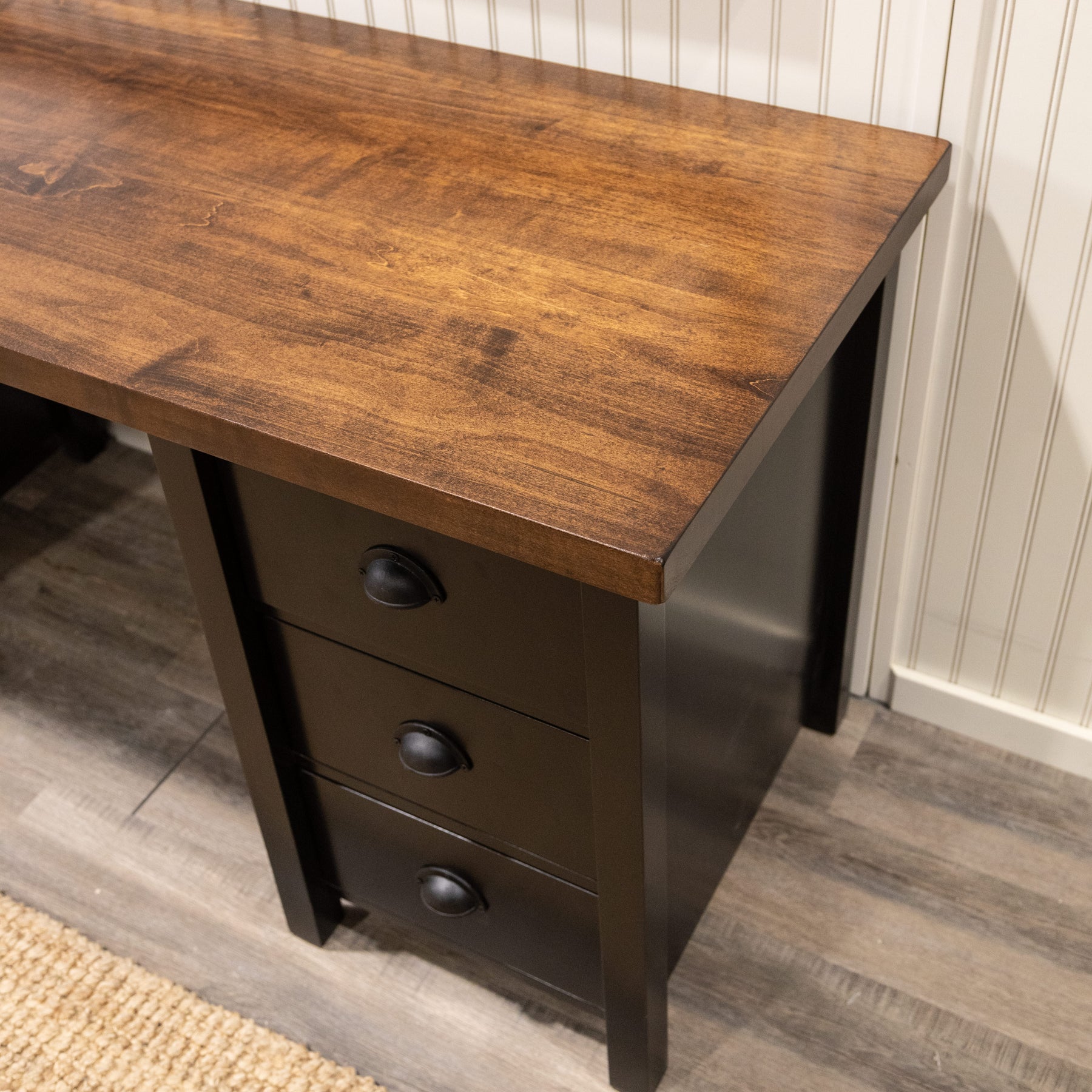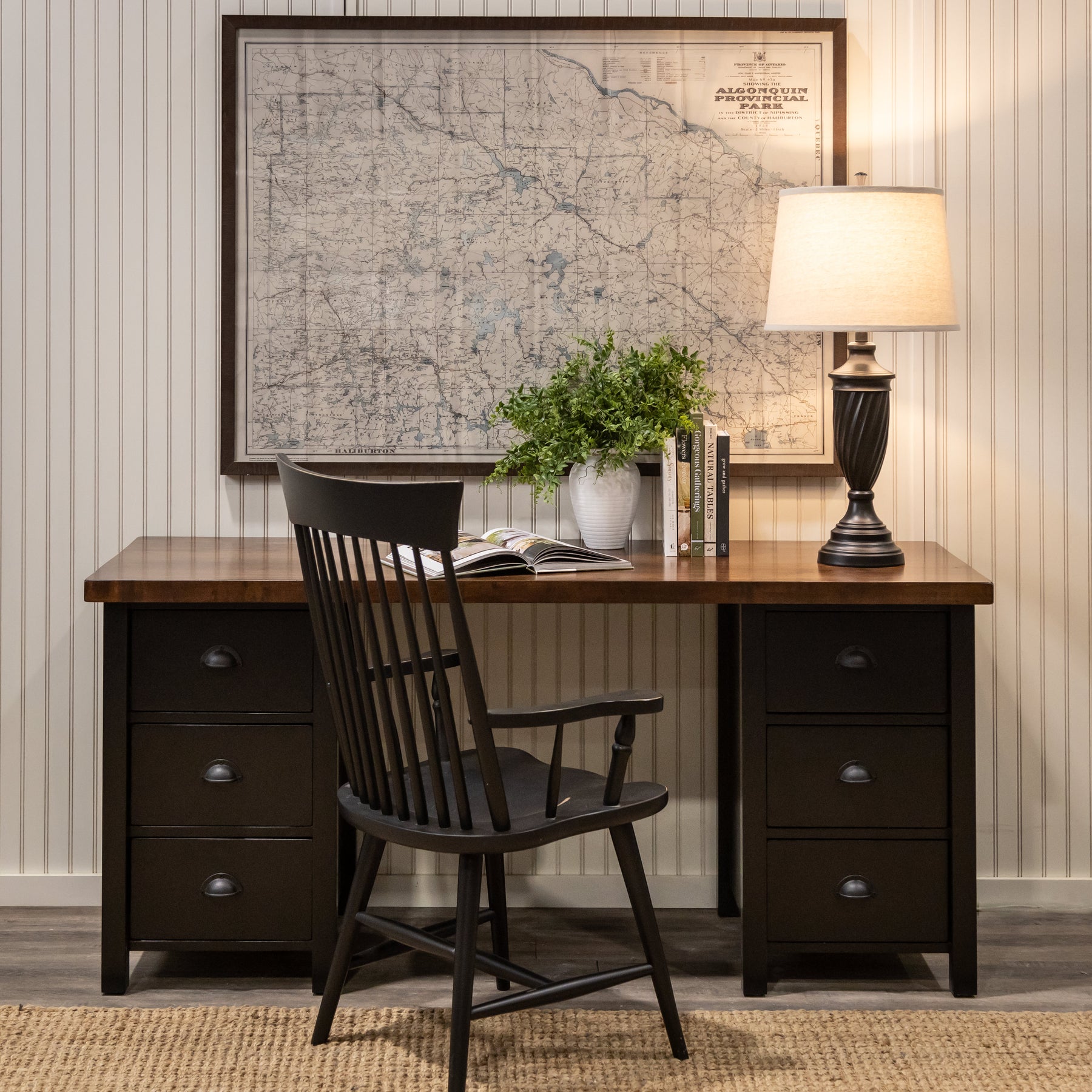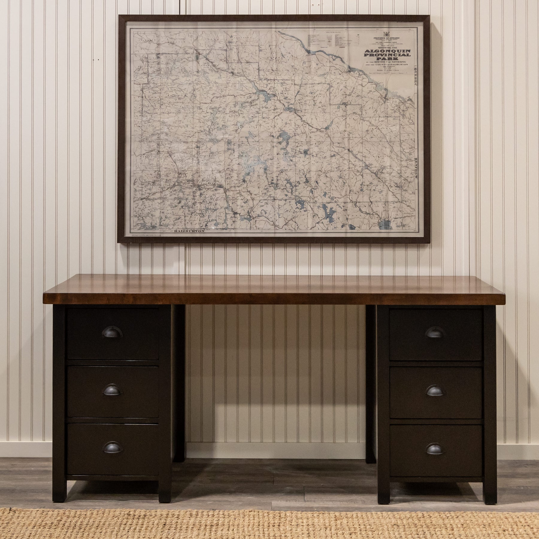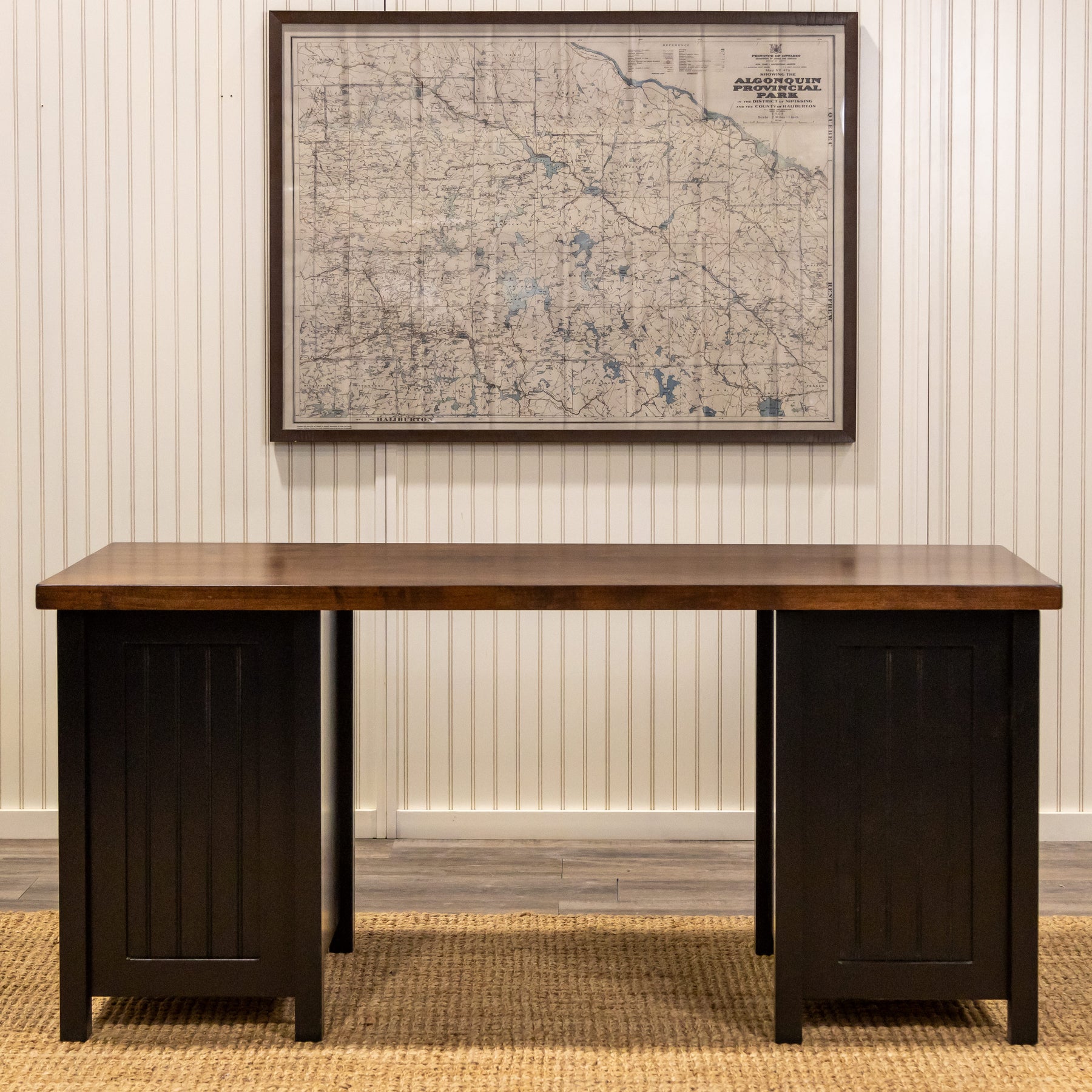 This newest addition to our Ontario-made office furniture features a 1 3/4" smooth brown maple top. With a two bank, three drawer layout and clean, simple lines, this desk is perfectly sized for cottages or home offices. Not too big, not too small...just right. The back of each bank is cleanly finished with beadboard panels. Available in an excellent selection of stain and paint colours.