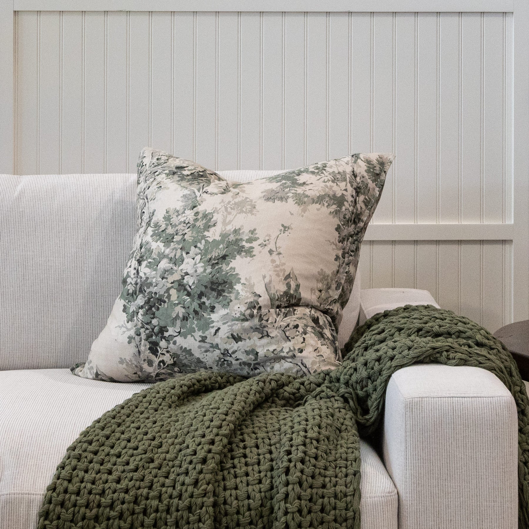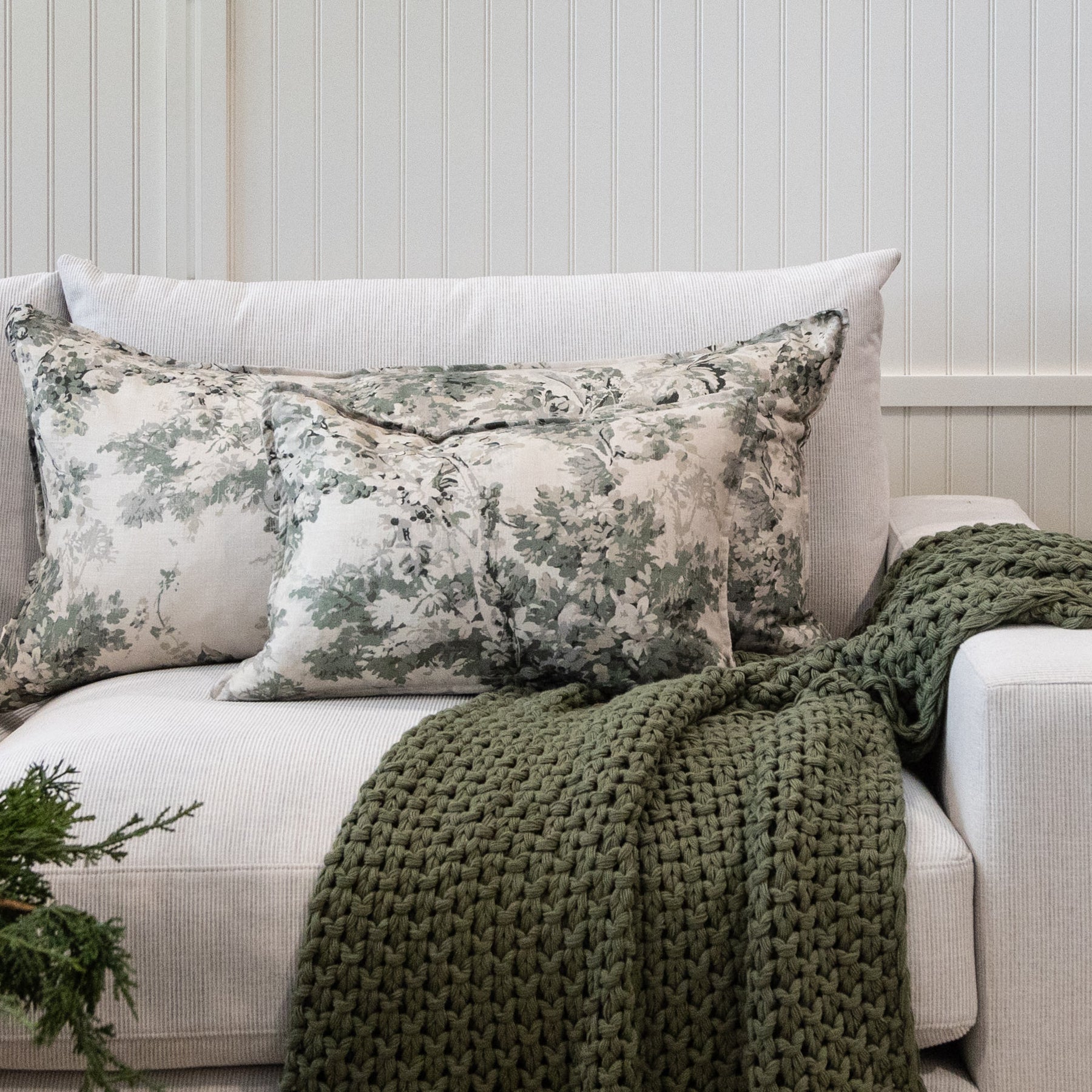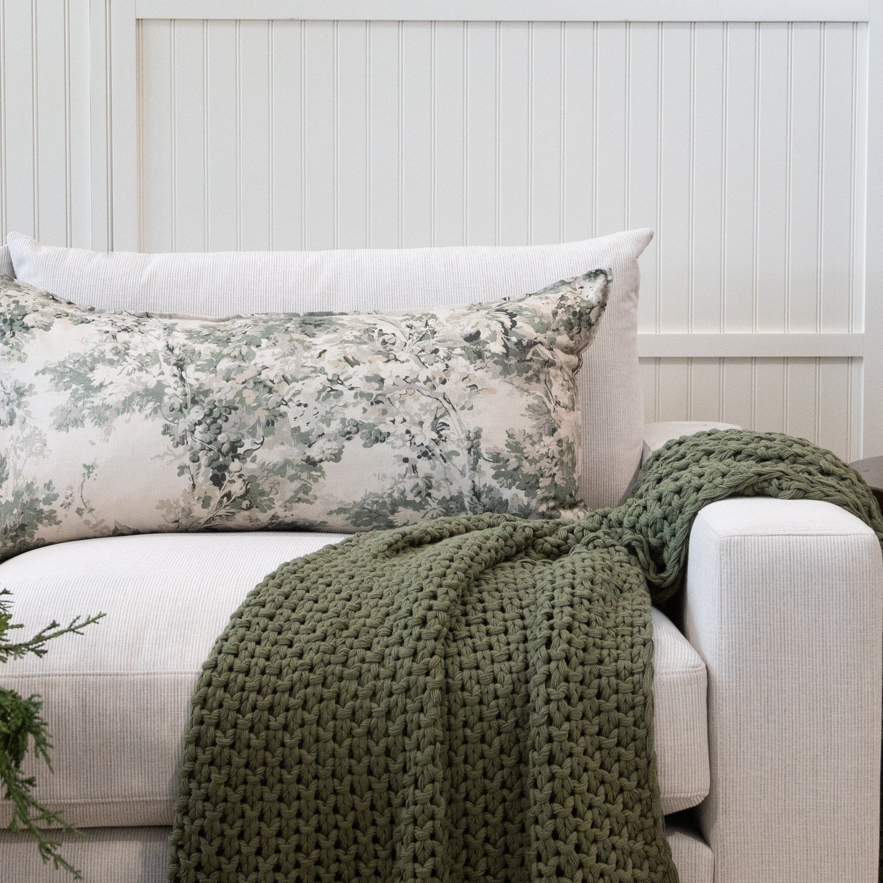 Bring serene, lakeside charm into your home with this elegant pillow from the Simply Cottage Lakehouse Collection. Featuring a soft, painterly botanical landscape in muted greens and natural tones, it adds a gentle touch of nature-inspired beauty to any sofa, chair, or bed. Crafted with a premium cover and plush down fill, this pillow blends relaxed cottage warmth with timeless design