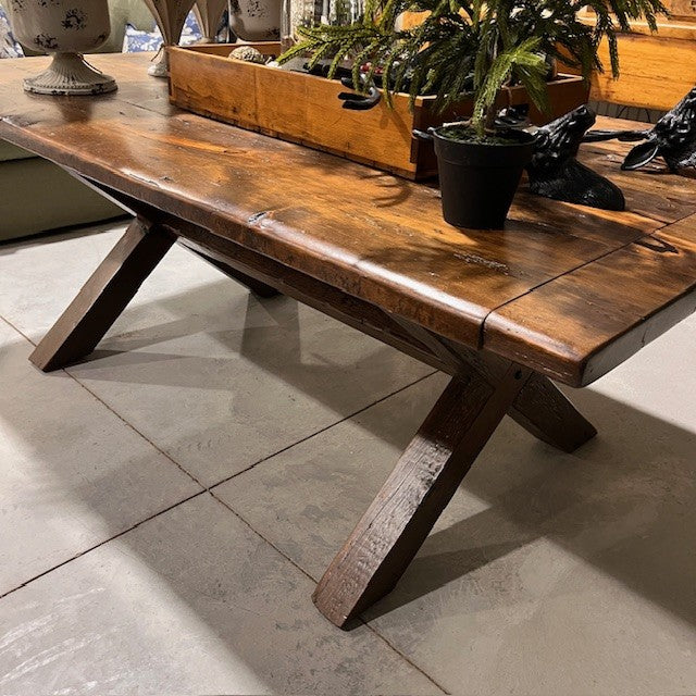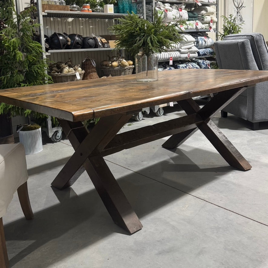 We are excited to introduce our very first extension table entirely made of reclaimed barn wood. Styled with our classic crossbuck base and stained in our early American which brings out the true character of the wood. Available with two 10” wide company boards that can extend your table an extra 20" when needed. When closed, the table boasts two breadboard ends that open for easy installation.