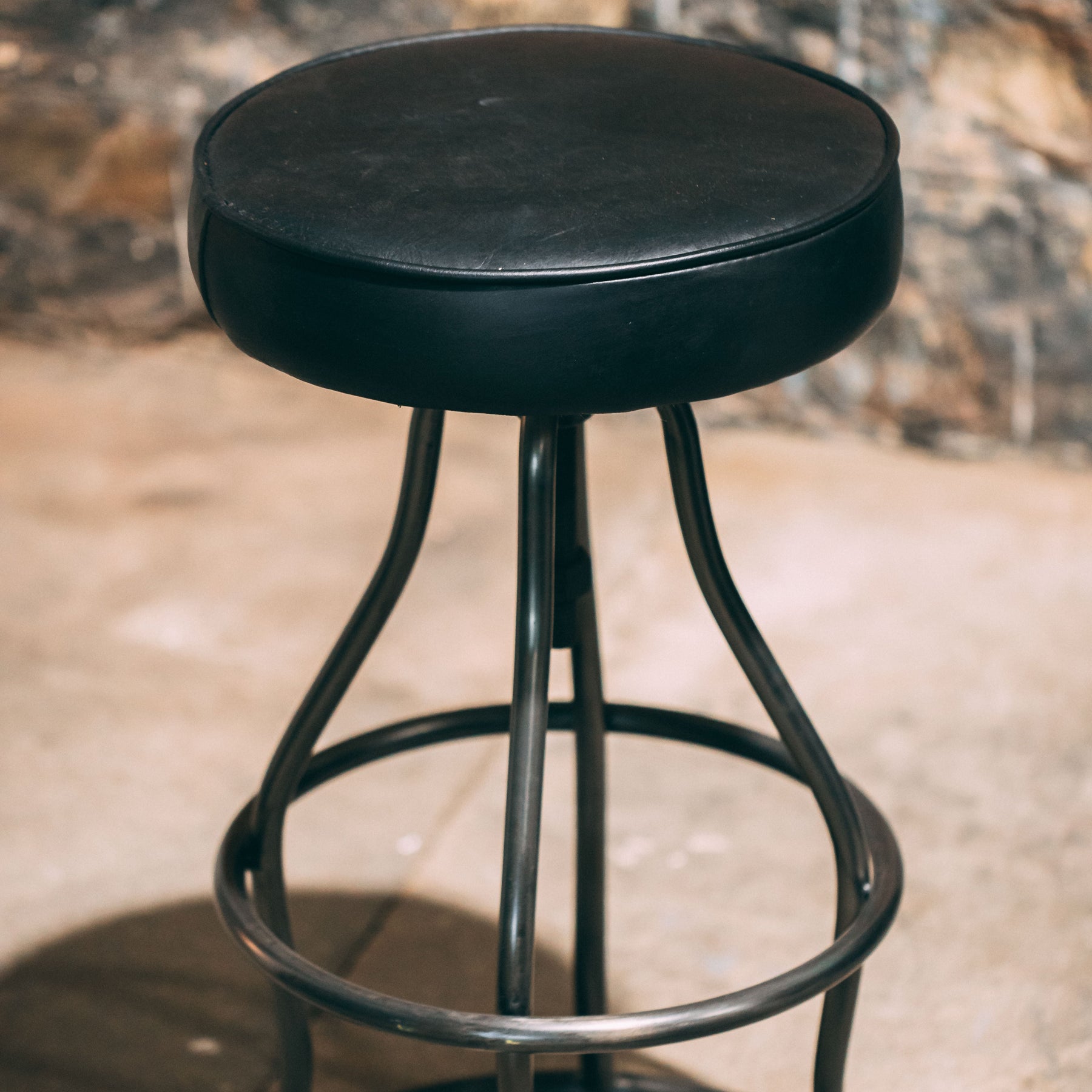 Bowie Stool Black Leather Top